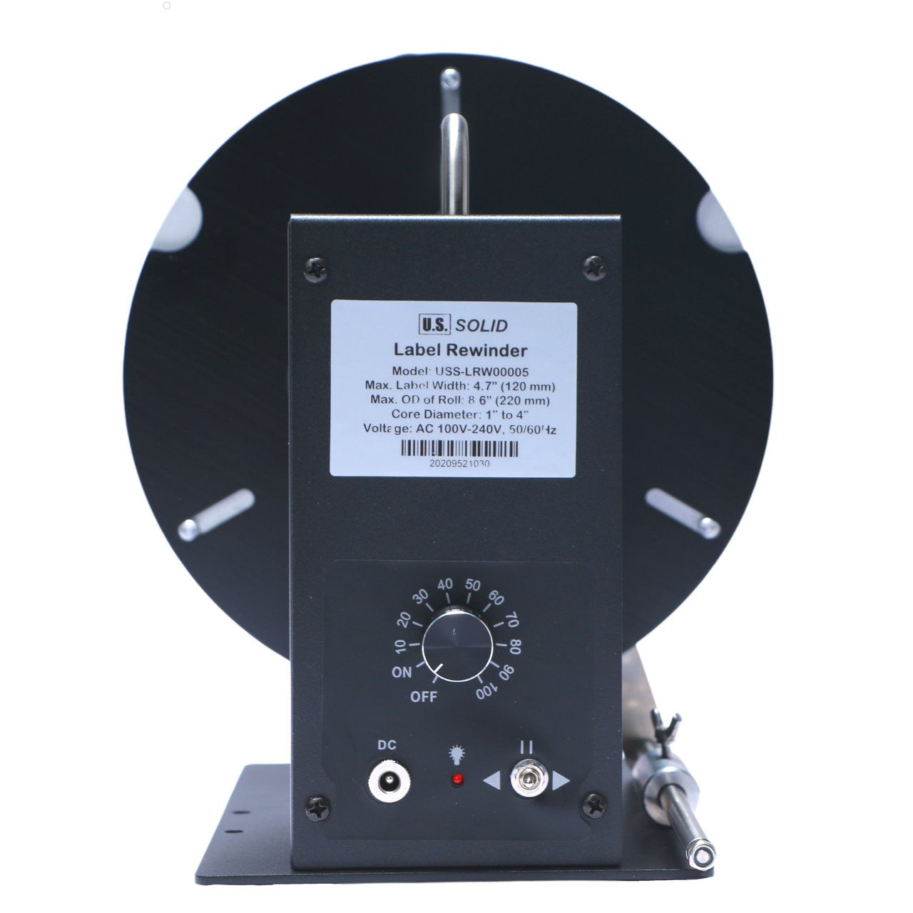 The U.S. Solid Automatic Label Rewinding Machine simplifies label management with 9-speed adjustments to match your printer and bi-directional winding (forward/backward). It creates compact 3" rolls for easy storage, supports coreless rewinding or 1"-4" cores (varies by model), and handles label widths up to 150 mm (5.91") with roll diameters up to 230 mm (9.06"). Features like an adjustable paper guide and Forward/Off/Backward switch ensure precision and efficiency, eliminating manual handling. Compatible with diverse workflows (e.g., JFLRW00007, JFLRW00013), its tool-free design boosts productivity while saving time and space. Built for durability, it offers reliable performance for high-volume tasks, backed by U.S. Solid's quality guarantee.