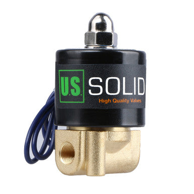 U.S. Solid normally closed (N/C) electric solenoid valve is constructed with a durable brass body, two-way inlet and outlet ports with one-quarter inch (1/8") female threaded (G) connections, and heat and oil resistant NBR seals. Suitable for use with hot or cold water, gas, air, very low viscosity fluids (< 20 cst), oils and hydrocarbons, e.g., gasoline, kerosene, or diesel fuel. Suitable for outdoor use. Not for use underwater. Customers chose this general purpose valve for: do-it-yourself projects, moderate temperature applications, water exchange for aquarium, air horn, or bleeding moisture from an air tank.