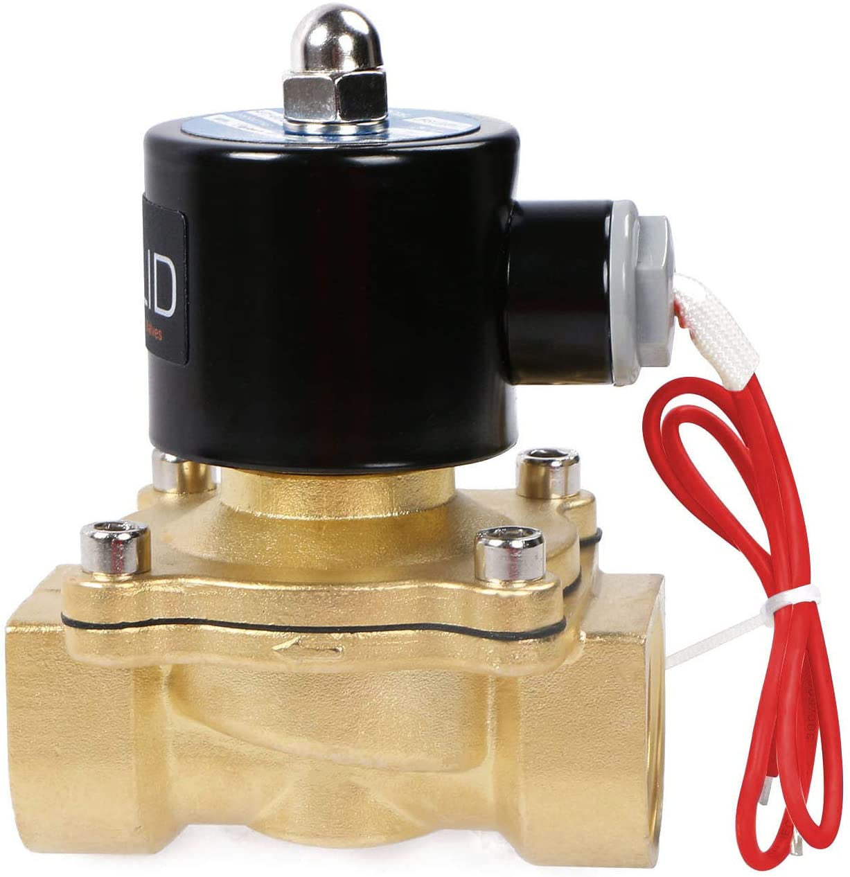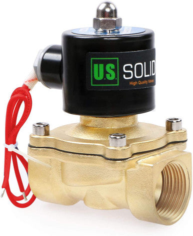 U.S. Solid normally closed (N/C) electric solenoid valve is constructed with a durable brass body, 1" female threaded (G) connections, and strong VITON gasket.
